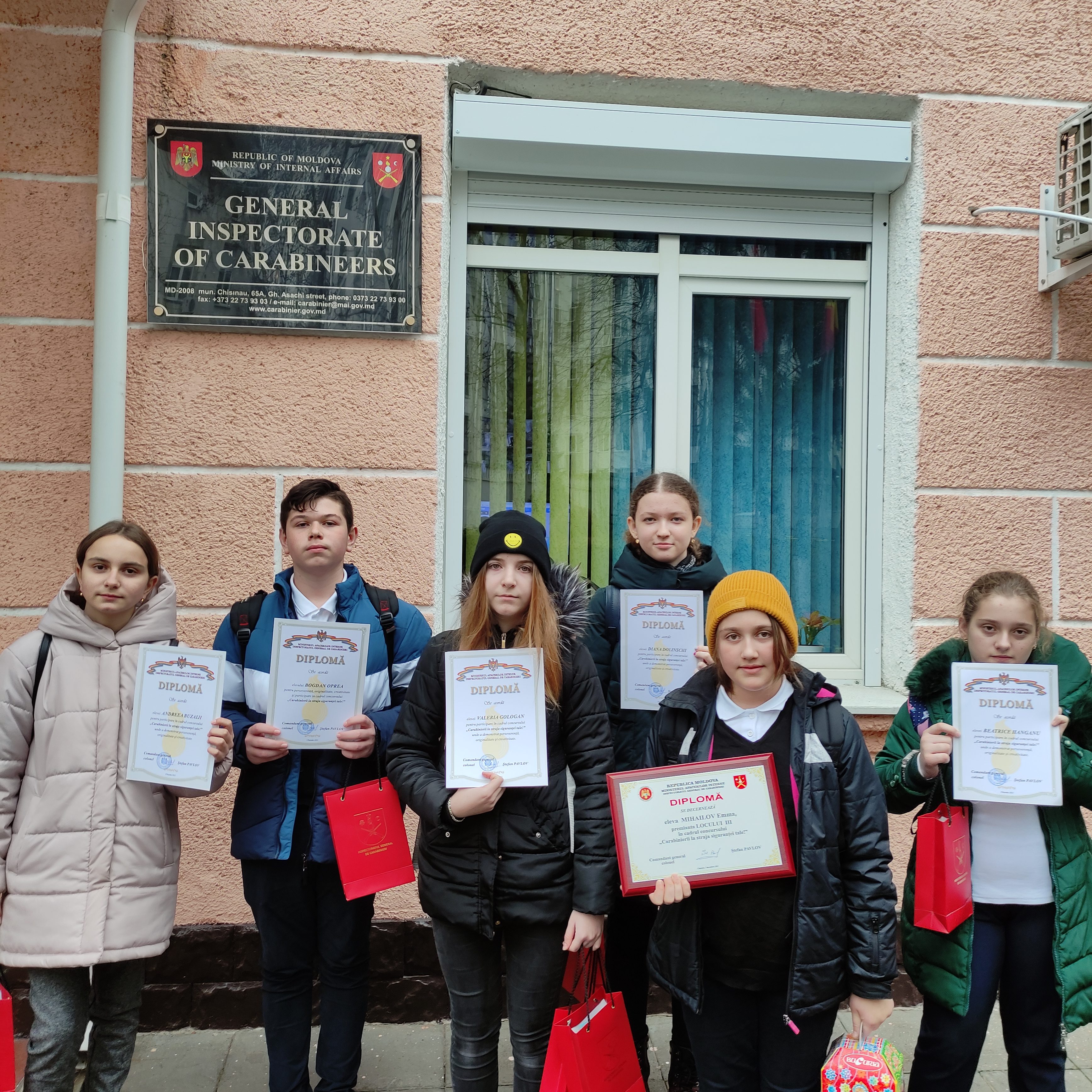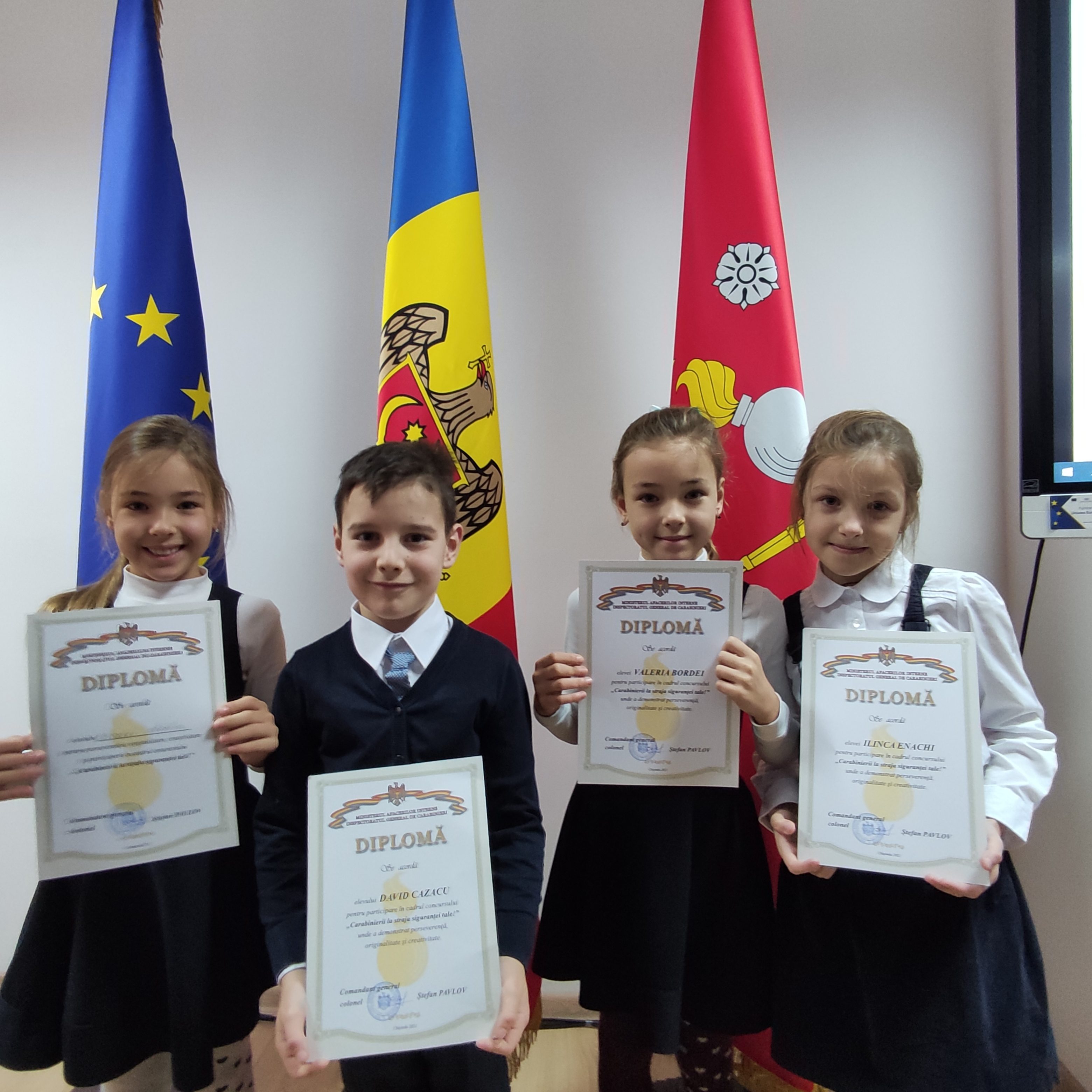 La concurs au participat elevii clasei a II-a „A” (Bordei Valeria, Bordei Adelia, David Cazacu și Ilinca Enachi), coordonați de către doamna profesoară Ursu Zinaida și elevii clasei a VI-a „B” (Mihailov Emma, Gologan Valeria, Oprea Bogdan, Dolinschi Diana, Buziaji Andreea, Hanganu Beatricia și Iovu Evelina), coordonați de către doamna profesoară Pavlov Zinaida. Toți copiii participanți la activitate au primit diplome de participare, iar elevei clasei a VI-a „B” – Mihailov Emma, i s-a conferit medalia de bronz a concursului. Diplomele și premiile au fost oferite copiilor de către Ștefan Pavlov – Comandant general colonel. Mai multe despre activitate vă invităm să aflați din poze.