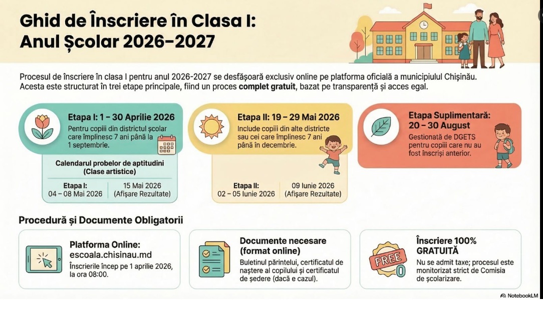 IPLT Ginta Latină informează părinții despre organizarea procesului de înscriere în clasa I, conform prevederilor stabilite de autoritățile educaționale.
