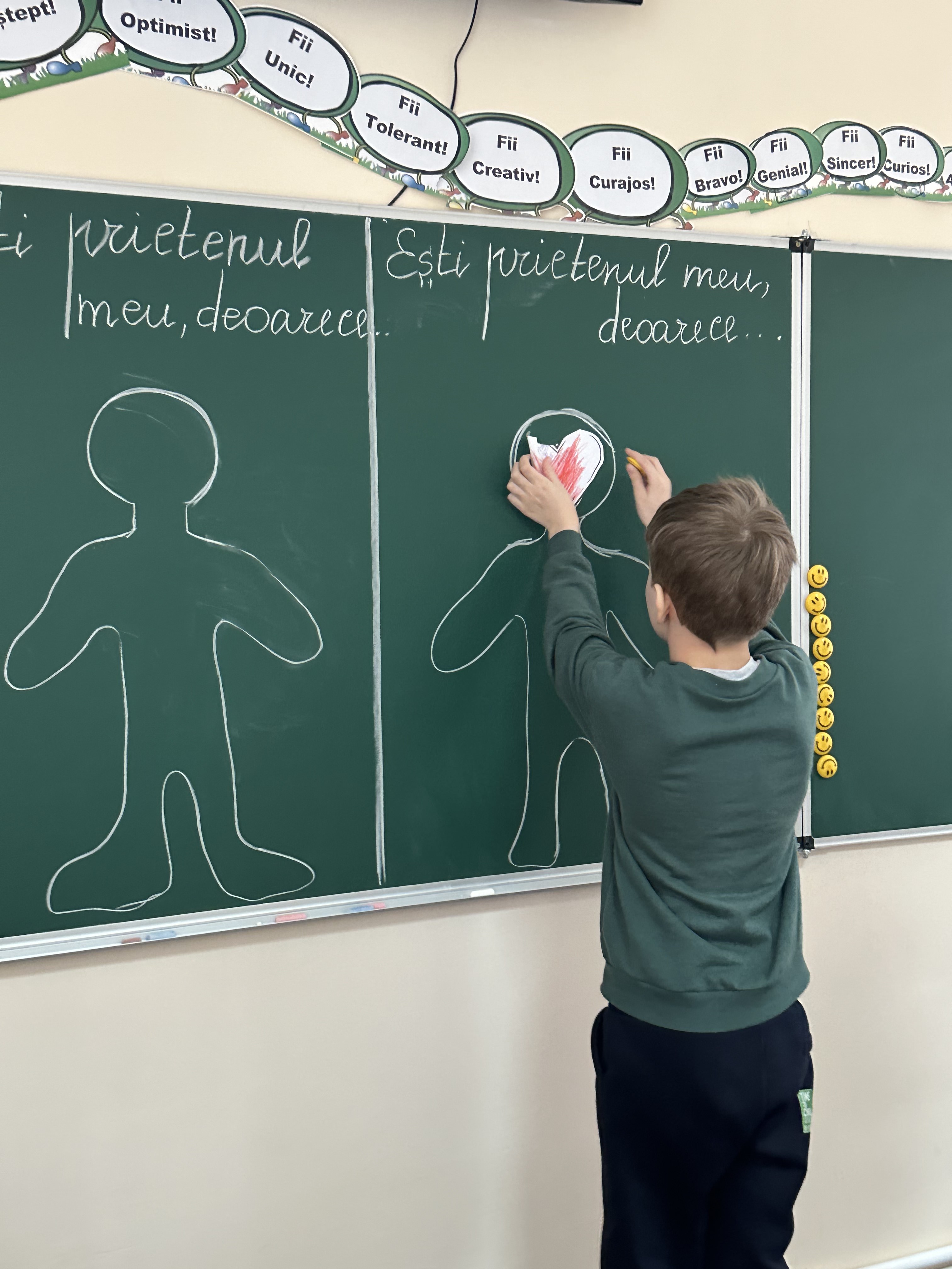A fost o ocazie unică de a explora și de a celebra, împreună cu elevii cu necesități speciale (CES), valori precum: prietenia, încrederea și respectul reciproc, care ne ridică la înălțimi nemăsurate. Prin discuții profunde și activități interactive, am reflectat asupra importanței prieteniei în viața noastră și asupra modului în care valorile personale ne ghidează în relațiile noastre. Am învățat că prietenia autentică este un dar prețios, care ne îmbogățește viața și ne susține în momentele dificile. Am explorat, împreună cu elevii, lumea valorilor, descoperind că ele sunt lumina noastră în călătoria vieții și că ele ne definesc ca ființe umane.