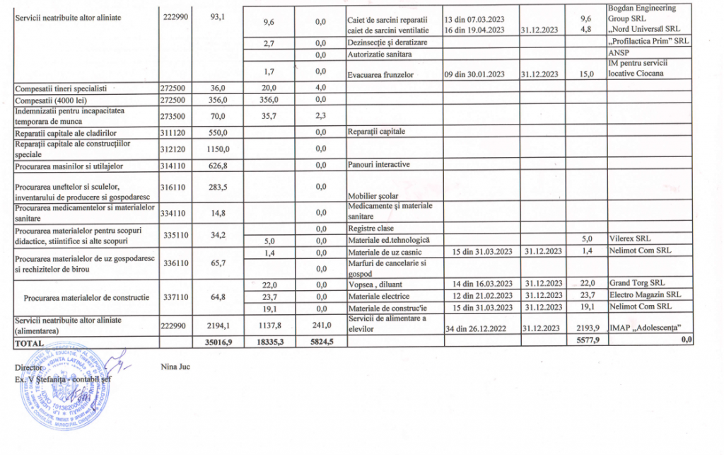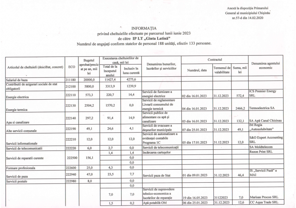 INFORMAȚIA privind cheltuielile efectuate pe parcursul lunii iunie