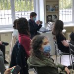 Cu un mesaj de felicitare a venit eleva clasei a XII-a „A” Pânzaru Evelina și absolventa noastră, acum studentă în anul II la Academia Națională de Muzică, Teatru și Arte Plastice, Nucă Adelina. Ca un adevărat critic de artă, Adelina a observat influența lui Vincent van Gogh și a expresioniștilor în lucrările elevilor, bucurându-se și pentru tabloul ei, pus la loc de cinste în cadrul expoziției.
