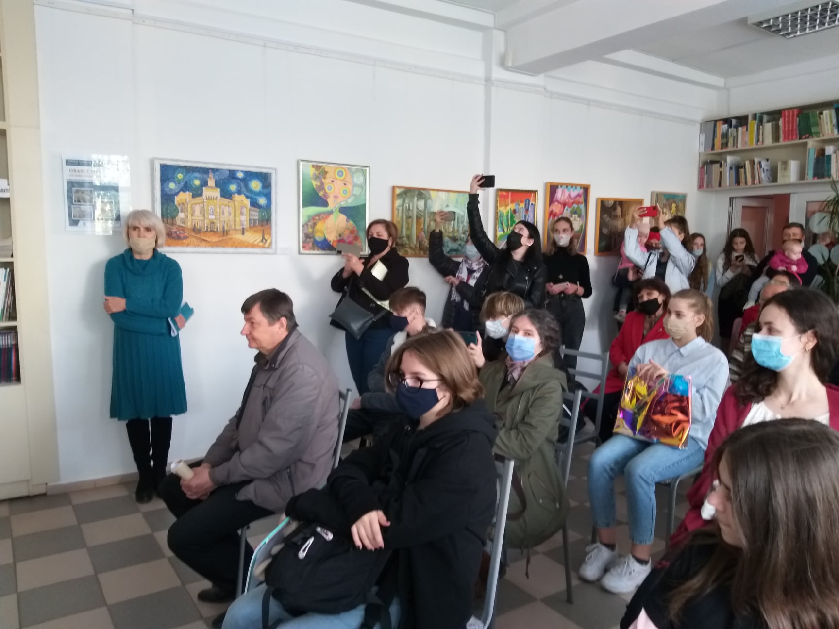 Despre scopul, ideea și valoarea vernisajului a vorbit apoi doamna profesoară de artă plastică – Minodora Ceban: „Expoziția este dedicată aniversării a 585 de ani ai Orașului Chișinău. Vedeți expuse aici cele mai frumoase lucrări artistice, realizate de elevii absolvenți ai Liceului „Ginta Latină”, care zi de zi, an de an ne-au adus mari succese la multe concursuri și expoziții din oraș. Acest proiect este un parteneriat interdisciplinar dintre IPLT „Ginta Latină” și Biblioteca „Transilvania”. În liceul nostru elevii studiază în clasele cu profil „Arte Plastice” deja de 30 de ani. Acești elevi talentați, plini de inspirație, emoții pozitive și capacități creative sunt dornici de a crea frumosul în imagini și de a-l transmite celor care apreciază arta la justa ei valoare. În această sală am expus cele mai reprezentative lucrări dedicate Chișinăului și realizate pe parcursul ultimelor trei decenii.”