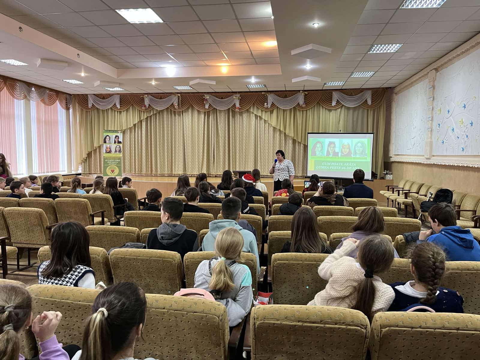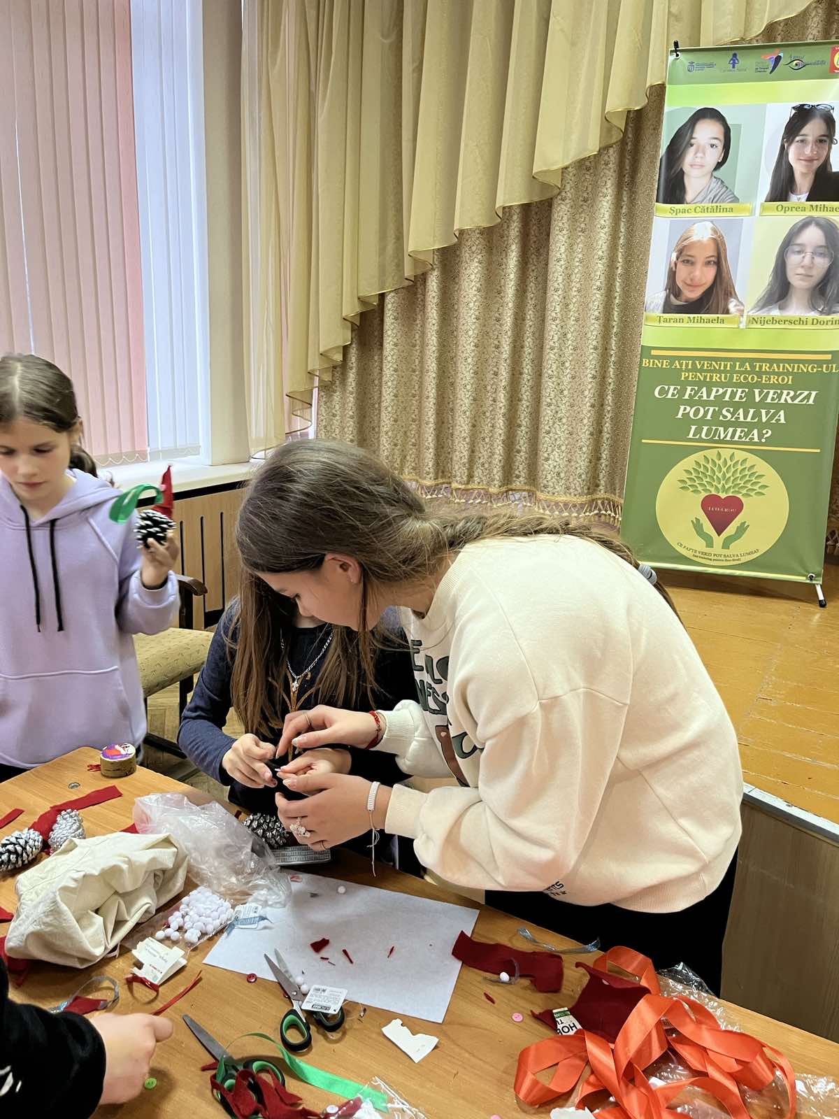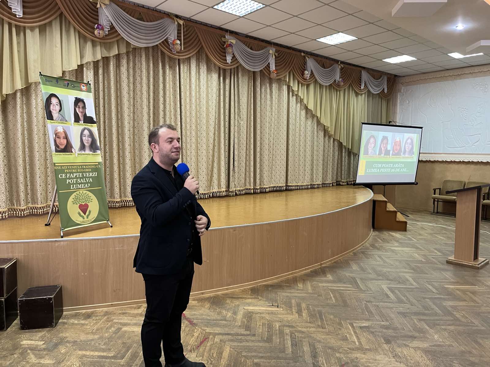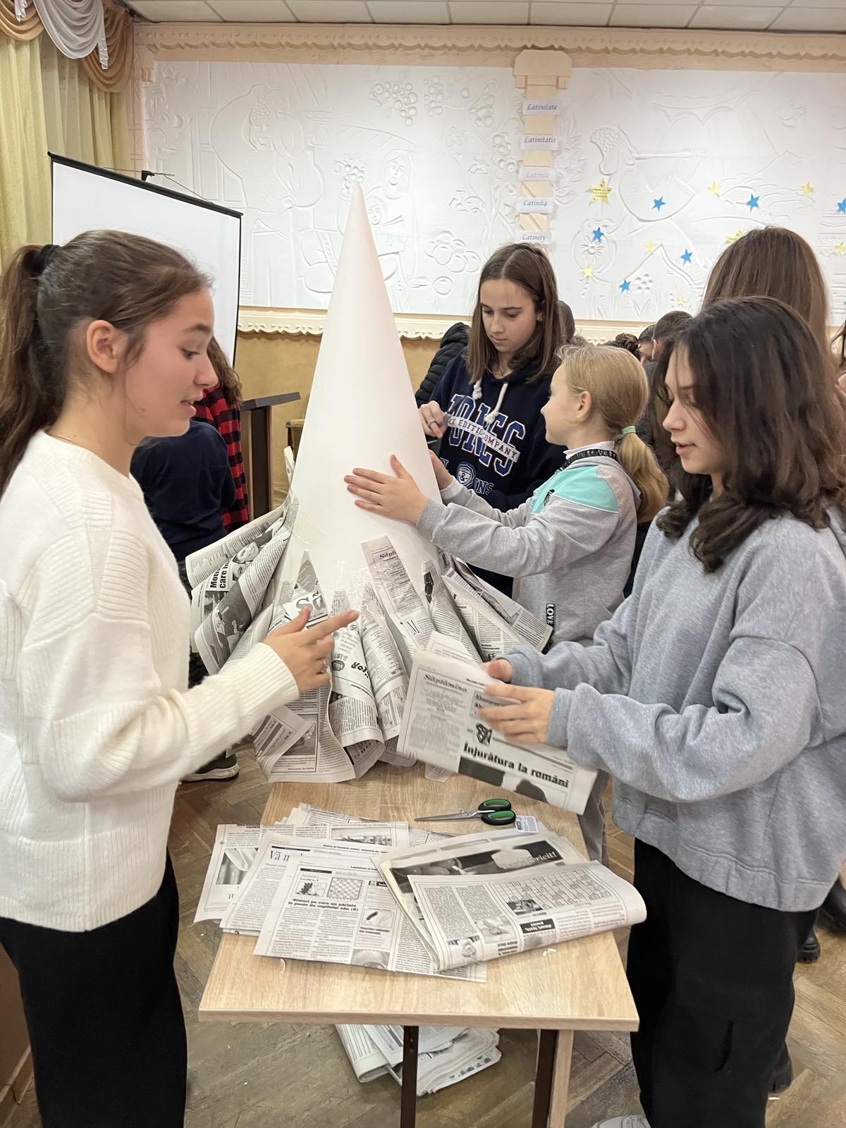 Azi, 12.12.2023, la IPLT „Ginta Latină” a avut loc lansarea unui proiect ecologic, intitulat „Colectează selectiv și valorifică deșeurile creativ!”, la care muncesc tocmai cinci parteneri: DGETS Chișinău, Centrul Municipal de Tineret Chișinău, AO „Caroma Nord”, IPLT „Ginta Latină” și „Liceul Originalității”. Elevii claselor a V-a – a IX-a au participat la un training pentru Eco-Eroi, cu o denumire sugestivă „Ce fapte verzi pot salva lumea?”. Oprea Mihaela, Șpac Cătălina, Țaran Mihaela și Nijeberschi Dorina (eleve în clasa a VIII-a „E”) au prezentat trei subiecte importante pentru noi, cei de azi, dar și pentru noi, cei de mâine: „Cum poate arăta lumea peste 26 de ani?”, „Începe să salvezi natura! E simplu!”, „Reciclez, deci salvez!”. După prezentarea temelor, elevele i-au învățat pe cei 84 de copii, prezenți la training. să confecționeze un pom de Crăciun și jucării pentru el din materiale reciclabile. Elevii, după cum vorbesc și pozele, au fost foarte impresionați de cele întâmplate la activitate.