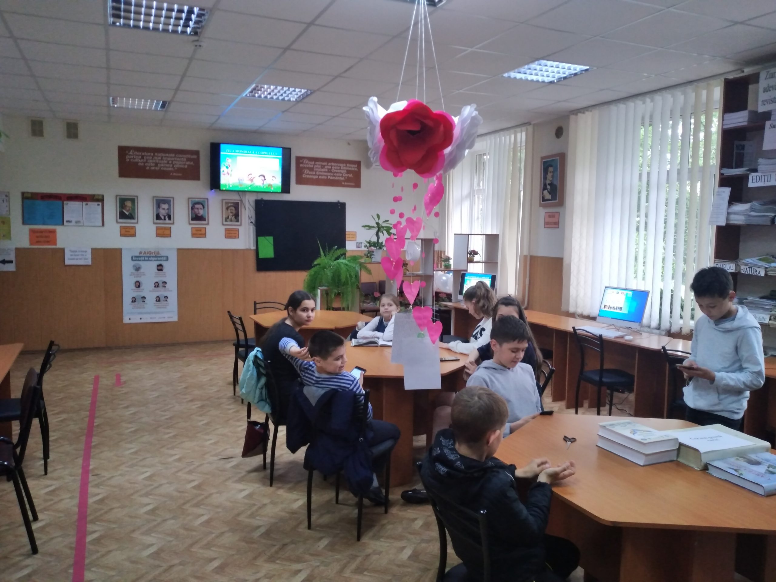 Azi, biblioteca IPLT „Ginta Latină” a sărbătorit Ziua Mondială a Copilului. Au participat elevi din clasele I – VII. Jocurile au fost distractive, copiii fiind mimi, vânători de comori, ghicitori de obiecte explicate şi rapizi ca picăturile de lumină la jocul „Dansează şi ocupă scaunul”.